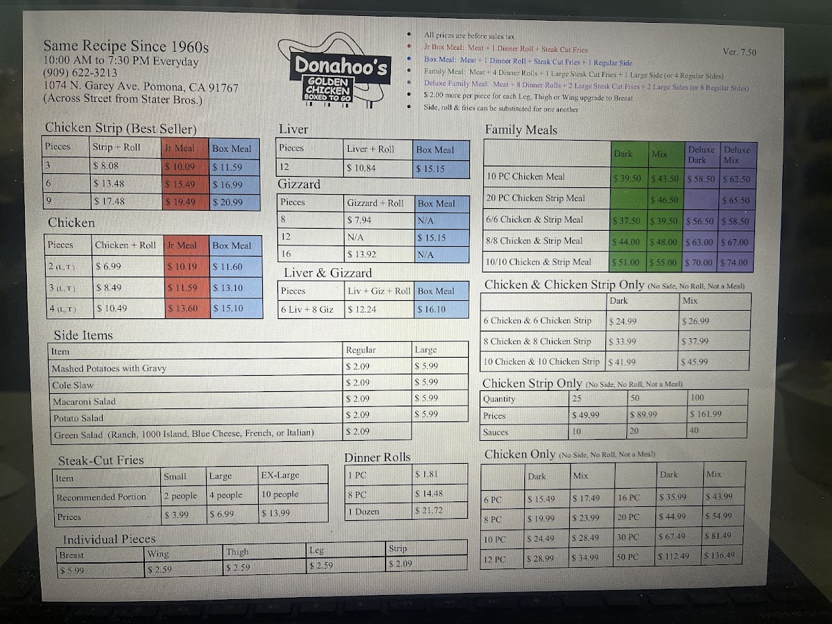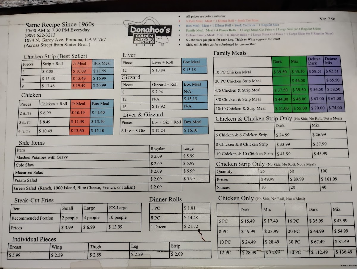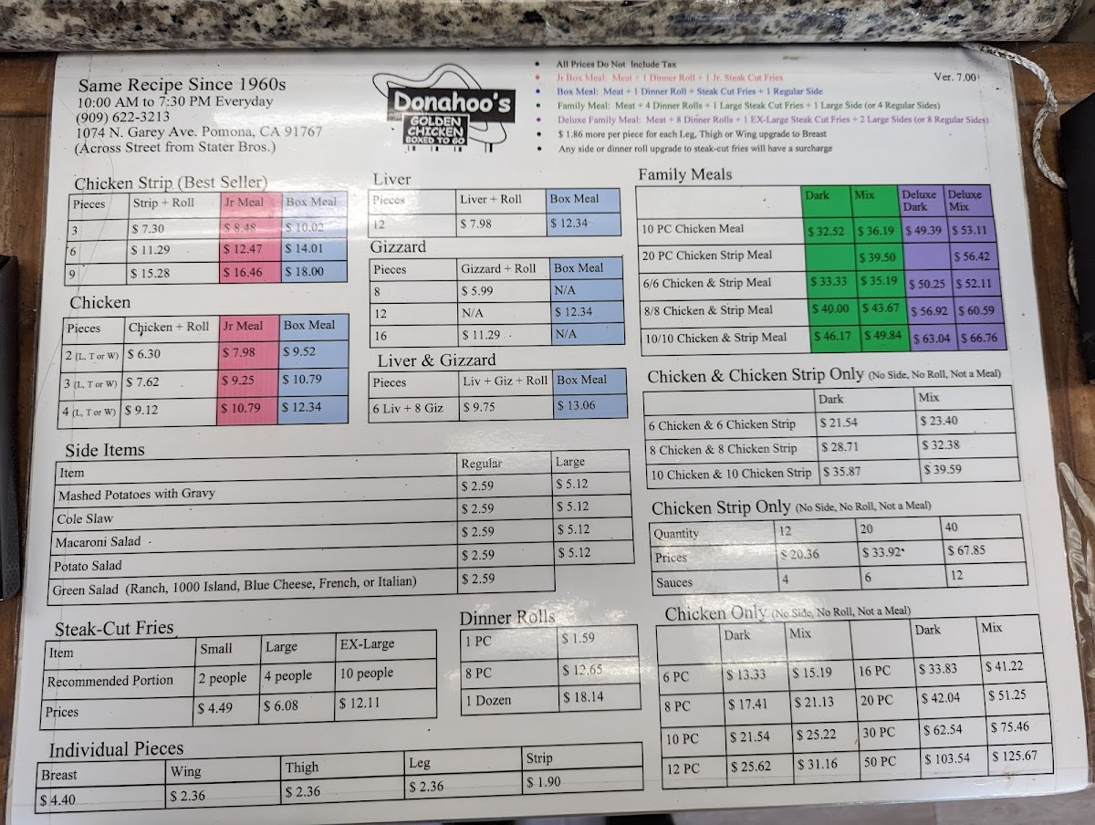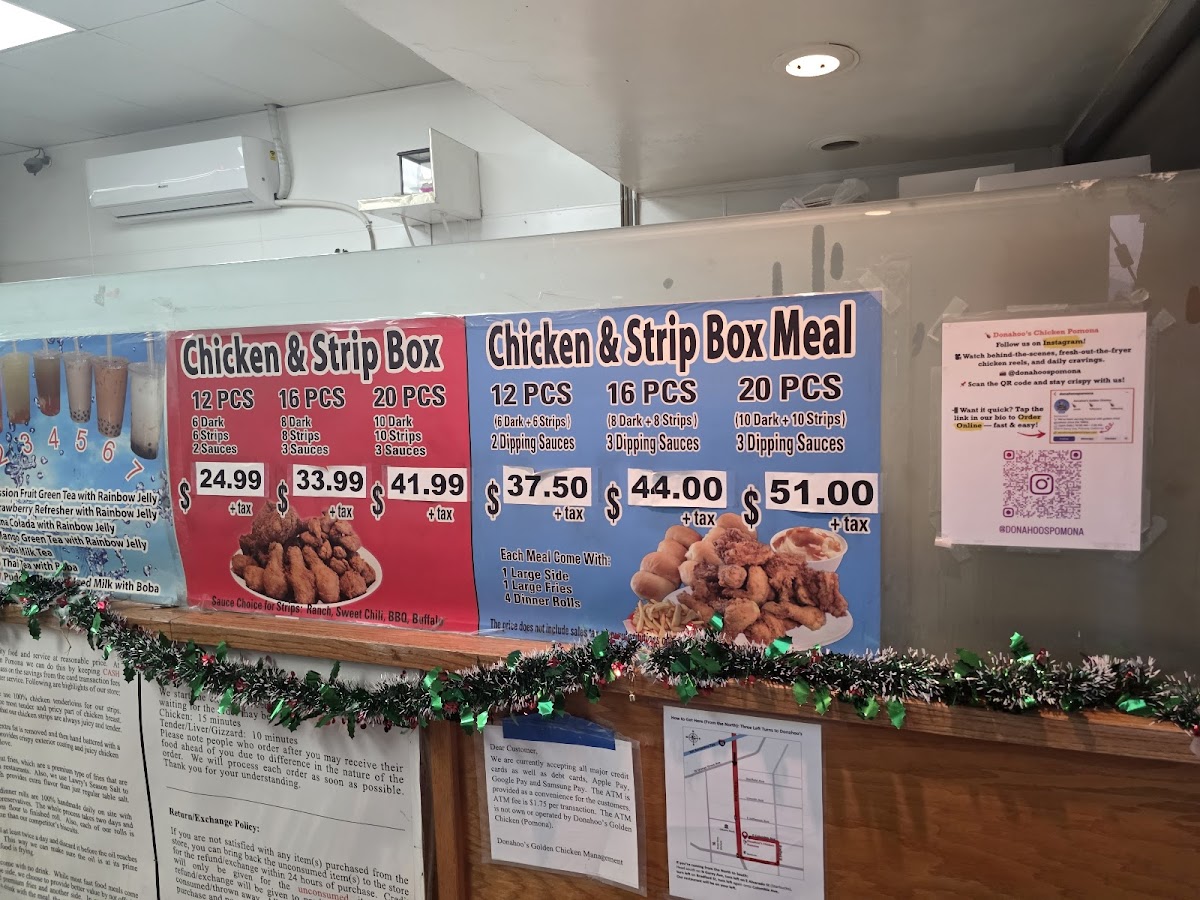 When you step into Donahoo's Golden Chicken, you’re in for a treat. Nestled in the heart of Pomona, CA, this spot is known for its mouthwatering fried chicken and comforting sides. The menu is packed with classic favorites that never disappoint. Whether you're craving a crispy chicken sandwich, a juicy drumstick, or golden fries, you’ll find something to satisfy every taste. For those who love a little spice, the flavorful hot wings will hit the spot, while the coleslaw and mashed potatoes provide the perfect balance to the meal. Donahoo’s Golden Chicken offers something for everyone, all served with a side of warmth and hospitality.